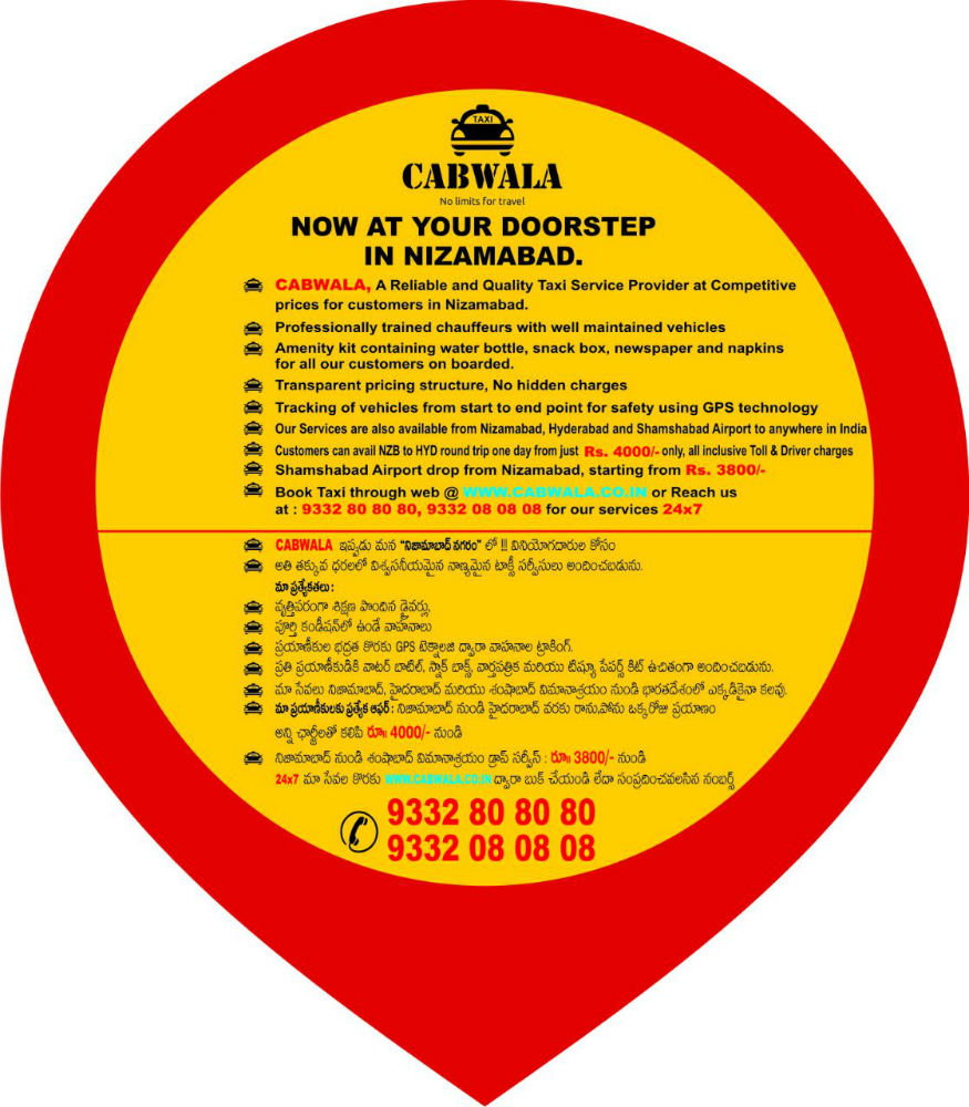 * CABWALA,A Reliable and Quality Taxi Service Provider at Competitive prices for customers in Nizamabad
